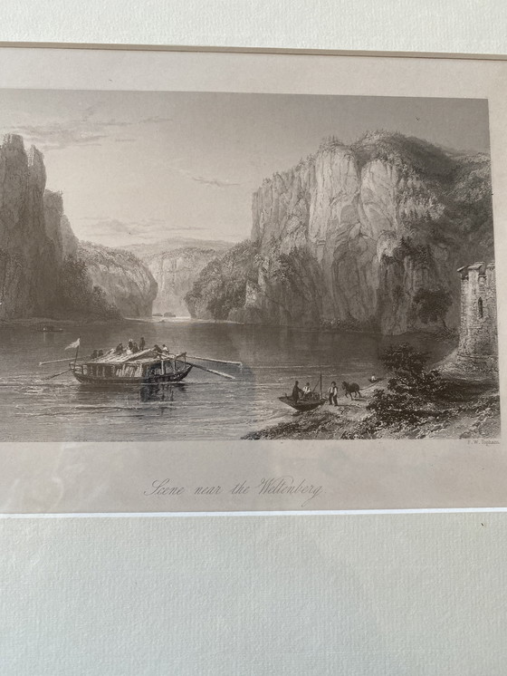 Bellissima incisione su acciaio di WH Bartlett 1845 Danubio vicino al monastero di Welkenberg In una bellissima cornice di alta qualità Con passepartout Incorniciata professionalmente Ottime condizioni L'incisione è 16 x 21 in condizioni incorniciate Si paga solo per l'incisione La cornice è inclusa gratuitamente