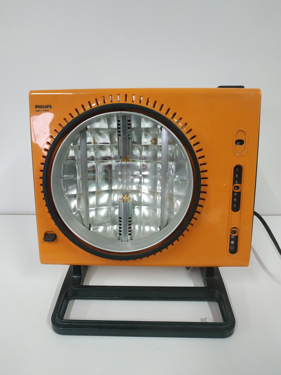 Lampada abbronzante/riscaldante a infrarossi originale Philips HP3115. Funzionante, tutti i pulsanti funzionano. La lampada a tubo sinistro è in condizioni leggermente peggiori di quella destra (funzione scottature). Consigliamo di sostituire le lampadine, ma tutto è a posto. Nessun danno.