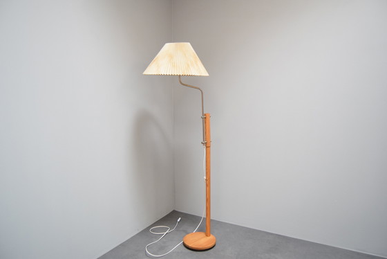 Lampada da terra regolabile in legno degli anni '70, altezza e inclinazione del paralume regolabili (vedi foto). Elegante design in legno proveniente dalla Cecoslovacchia. Nuovo cablaggio, 2 lampadine E26 o E27. Adattatore USA incluso con patina anticata. VK-1301.