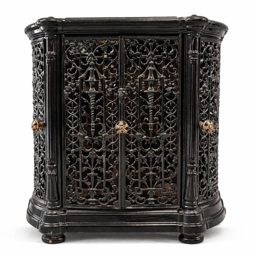 Inserto per camino antico in ghisa con finitura nera decorata, Europa del XIX secolo.