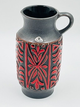 Vaso in ceramica a rilievo della Germania occidentale, rosso, anni '70