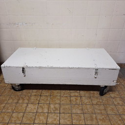 Scatola di legno bianca su ruoteScatola di legno bianca su ruote