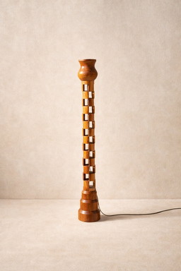 Grande lampada scultorea in legno – stile brutalistaGrande lampada scultorea in legno – stile brutalista
