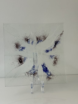 Ciotola decorativa in vetro con dettagli blu e marroni