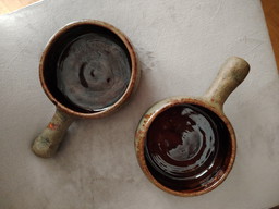 Campo piano Orezza Corsica vintage Keramik Schale mit Griff. FeuerfestCampo piano Orezza Corsica vintage Keramik Schale mit Griff. Feuerfest