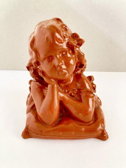 Busto in gesso di un bambino pensierosoBusto in gesso di un bambino pensieroso