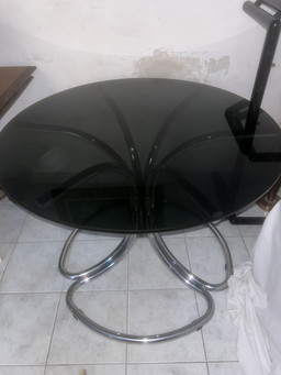 Tavolo da salotto in vetro fumé design italiano Giotto stoppino 60/70