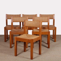 Set di 6 sedie vintage in massello di olmo e paglia, 1970