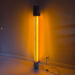 Funky lampada industriale GDR - VEB Leuchtenbau Wittenberg con luce magenta