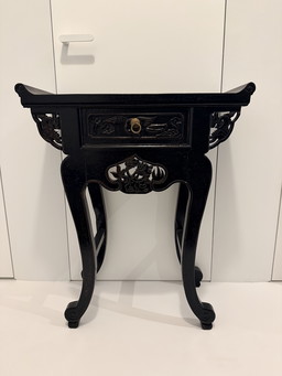 Consolle orientale vintage in legno nero con cassetto.Consolle orientale vintage in legno nero con cassetto.