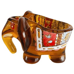 Porta pipa decorativo in vetro ambrato smaltato Moser Royo vintage, anni '30
