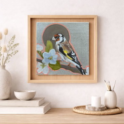 Cardellino, olio su tela, 20x20 cm, Sandra Kolondam