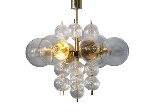Lampadario in ottone e vetro di metà secolo, Europa, anni '60