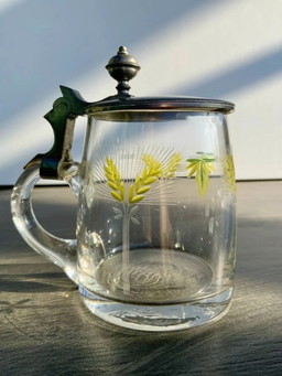 Boccale da birra antico con coperchio in peltro e smalto dipinto a mano (0,4 l)