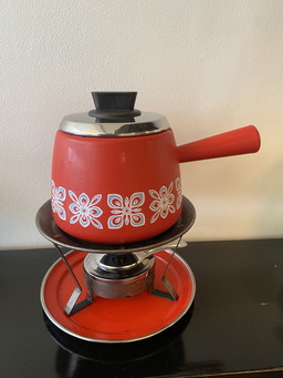 2 ciotole e 1 piatto da portata silit rosso smalto metallo cromo motivo op art anni '70