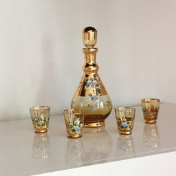Circa anni '50 - Germania - Set da bar Mcm - Sei bicchieri bassi, 4 bicchieri da shot (Schnapps) a stelo lungo e un vassoio