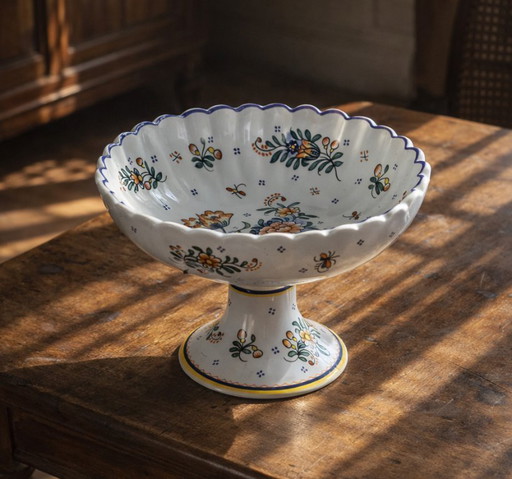 Grande ciotola con piede realizzata a mano da Moustiers, dipinta a manoGrande ciotola con piede realizzata a mano da Moustiers, dipinta a mano