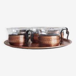 Set da tè in rame/vetro, vassoio da 7 pezzi con 6 bicchieriSet da tè in rame/vetro, vassoio da 7 pezzi con 6 bicchieri