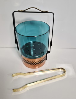 Contenitore per cubetti di ghiaccio, secchiello per il ghiaccio, bicchiere con pinze, metà anni '60