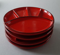 Piccolo piatto cinese con medaglione rosso vintage
