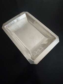 Posacenere/vassoio tascabile vintage in metallo argentato quadrato – punzoni “8” e “KM”, stile Art Déco 1930