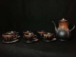 Teiera + 4 ciotole in gres piritico di Puisaye, Sig. Isambert Robert Deblander