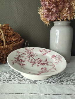 Antica fruttiera in terracotta rosa ironstone