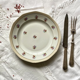 Piatto da portata rotondo M e S Berry Piccoli fiori e doratura Porcellana antica Limoges Francia