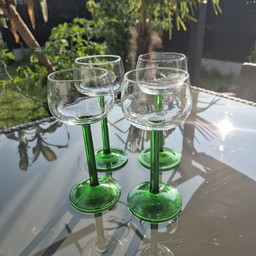 Set di 4 bicchieri vintage - Francia, anni '70 - steli verde smeraldo