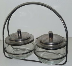 Barattoli per marmellata placcati in argento con supporto, set da 3