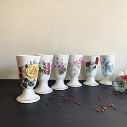 6 tazze da caffè e tè Daniel Moreau in porcellana di Limoges con fiori mazagrans e bordo dorato