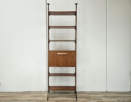 Libreria in teak/cielo anni '60 con ripiani e scomparto