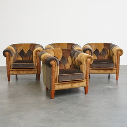4 X Poltrona di design Art Deco in pelle di manzo color cognac
