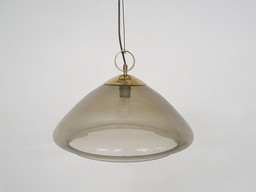 Lampada a sospensione in vetro fumé e ottone di metà secolo