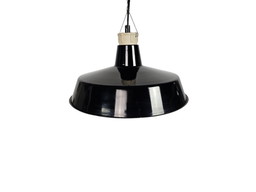 Industrial Italian Black Enamel Factory Lamp with Iron Top, 1950s