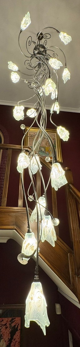 Sculptural Floral Glass Chandelier, Czechoslovakia, 1970s–1980sSculptural Floral Glass Chandelier, Czechoslovakia, 1970s–1980s