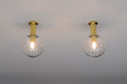Great Italian XXL Mid Century brass ceiling lamps with long rod | Ø 50 cm | Ø 19.7"