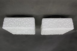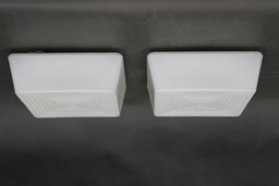 1970S Pair Of Milky Glass Square Ceiling Lights, Czechoslovakia