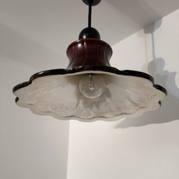 Contemporary Transparent And Brown Sphere Pendant In Murano Glass