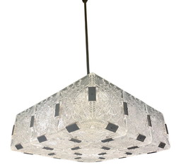 elegant 2-tier kinkeldey mid century PENDANT LIGHT crystal glass and chrome with 14 glass prisms 1960s chandelier