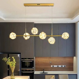 Dahlia chandelier with 6 gold garland-style balls for the dining room