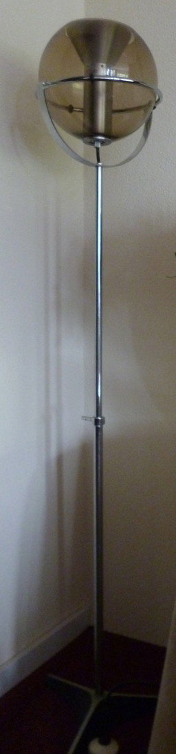 Christian Ploderer "Cpl F1" Floor Lamp with Chrome Base and Blown Glass Shade.