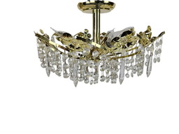Plafondlamp met bloemenmotief en glazen ornamenten, jaren 50, Duitsland