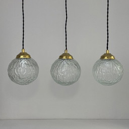 PAIR OF VINTAGE ROUND GLASS PENDANTS
