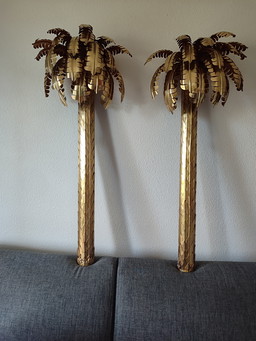 Vintage Mid-century six-arm brass chandelier palm leaves Hollywood Regency 1970s