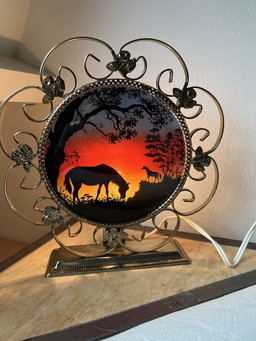 Table lamp brass leatherette fabric borders fringes 43cm 80s vintage