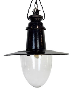 Industrial German Black Enamel Pendant Lamp with Glass Cover, 1930s