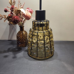 Vintage Glass Ceiling Light Ø32 cm, Flush Mount, E27 Socket, Gold Tone Metal Frame, Mid-Century Style