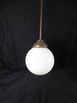 Vintage white glass and brass pendant lamp, Czechoslovakia 1960