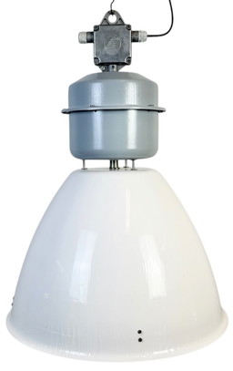 Large White Enamel Industrial Lamp with Clear Glass Cover from Elektrosvit